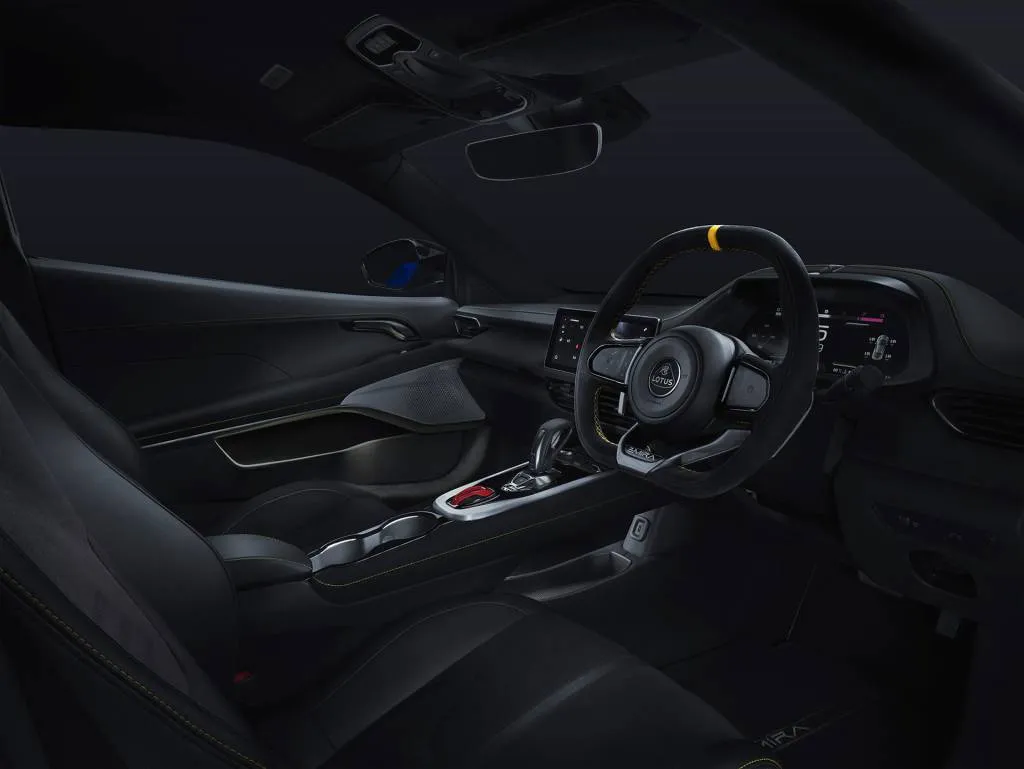 The Emira is Lotus’ last car to be equipped with an internal-combustion engine. The 4-cylinder engine is a 2.0-liter turbo-4 sourced from Mercedes-Benz AMG. It’s rated at 360 and comes exclusively with an 8-speed dual-clutch automatic.